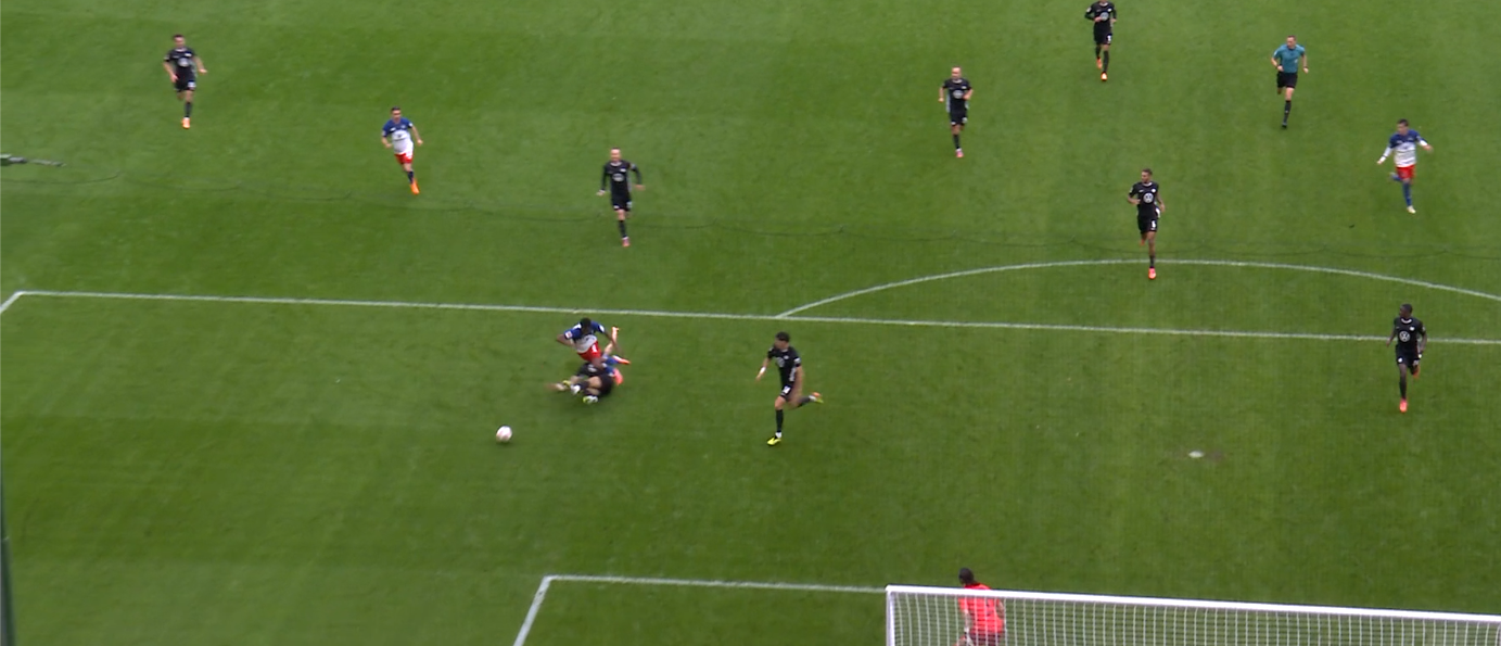 Szene 4: Die Wölfe verloren den Ball im Spielaufbau und die Hausherren konterten direkt. Capaldo steckte direkt in die Spitze auf Lukonga, der halbrechts von Koulierakis klar per Grätsche zu Fall gebracht wurde. Für mich eine klare Sache, auf Strafstoß zu entscheiden. Koulierakis rauschte im Strafraum zu ungestüm heran und brachte den Angreifer der Hamburger zu Fall. Auch wenn hier kein sonderlich großer Kontakt vorlag, die Grätsche von hinten im vollem Lauf, ist der kleine Kontakt ausreichend den Angreifer am Angriff zu hindern.